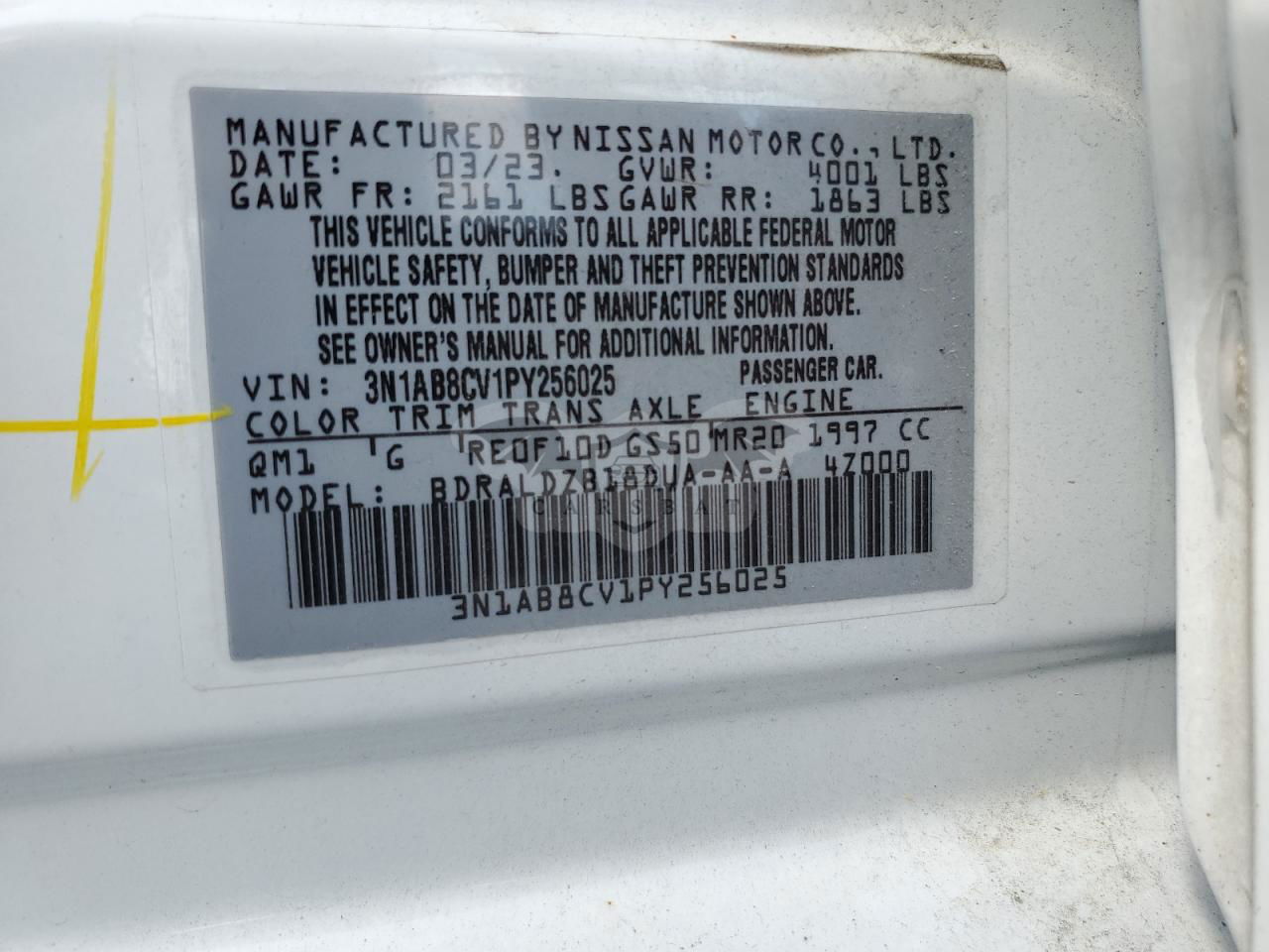 • VIN: 3N1AB8CV1PY256025