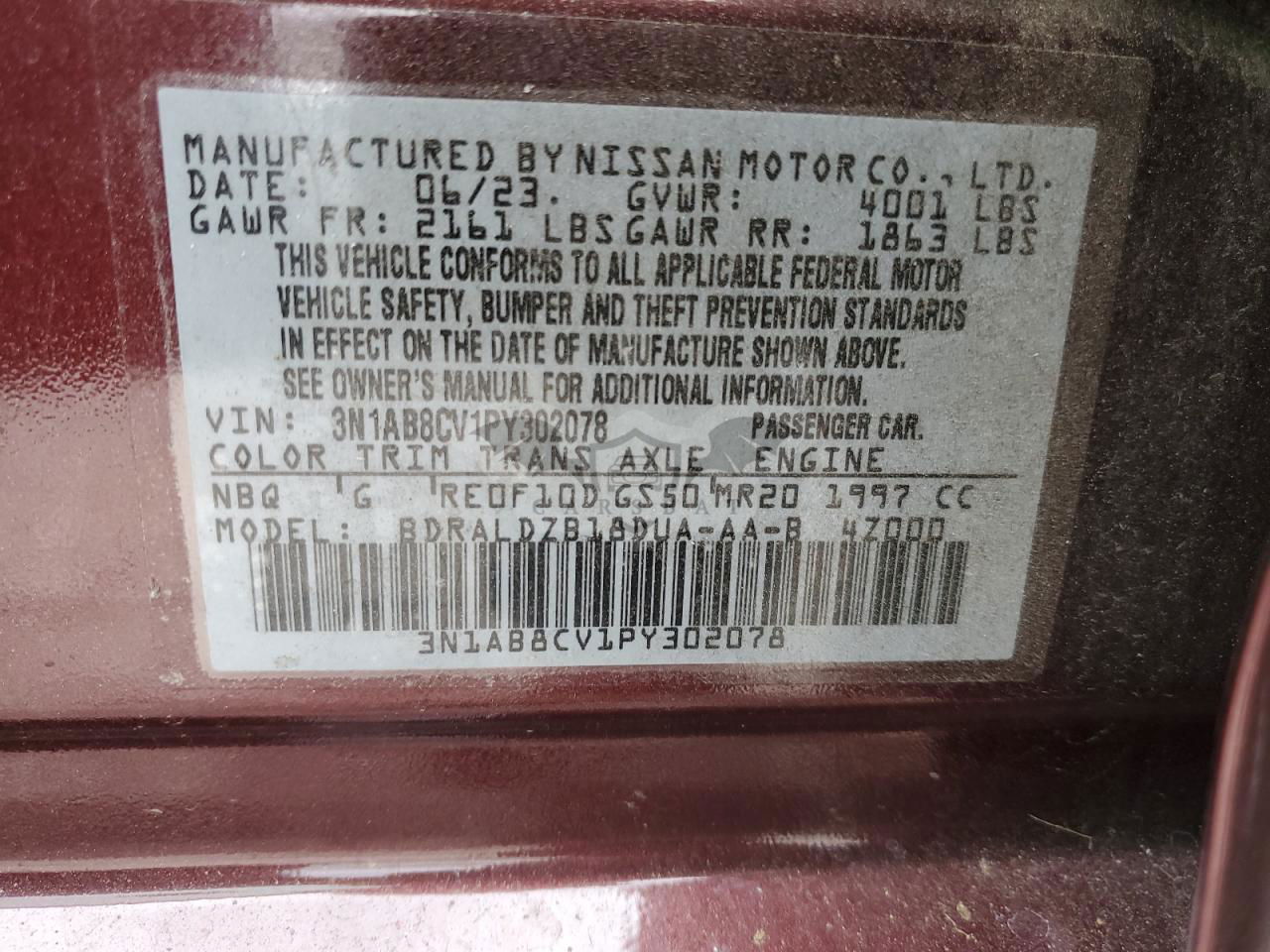 • VIN: 3N1AB8CV1PY302078
