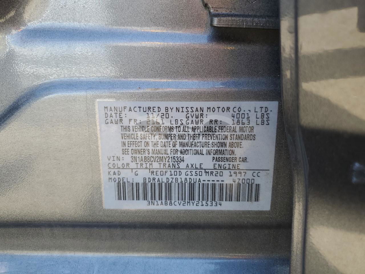 • VIN: 3N1AB8CV2MY215334