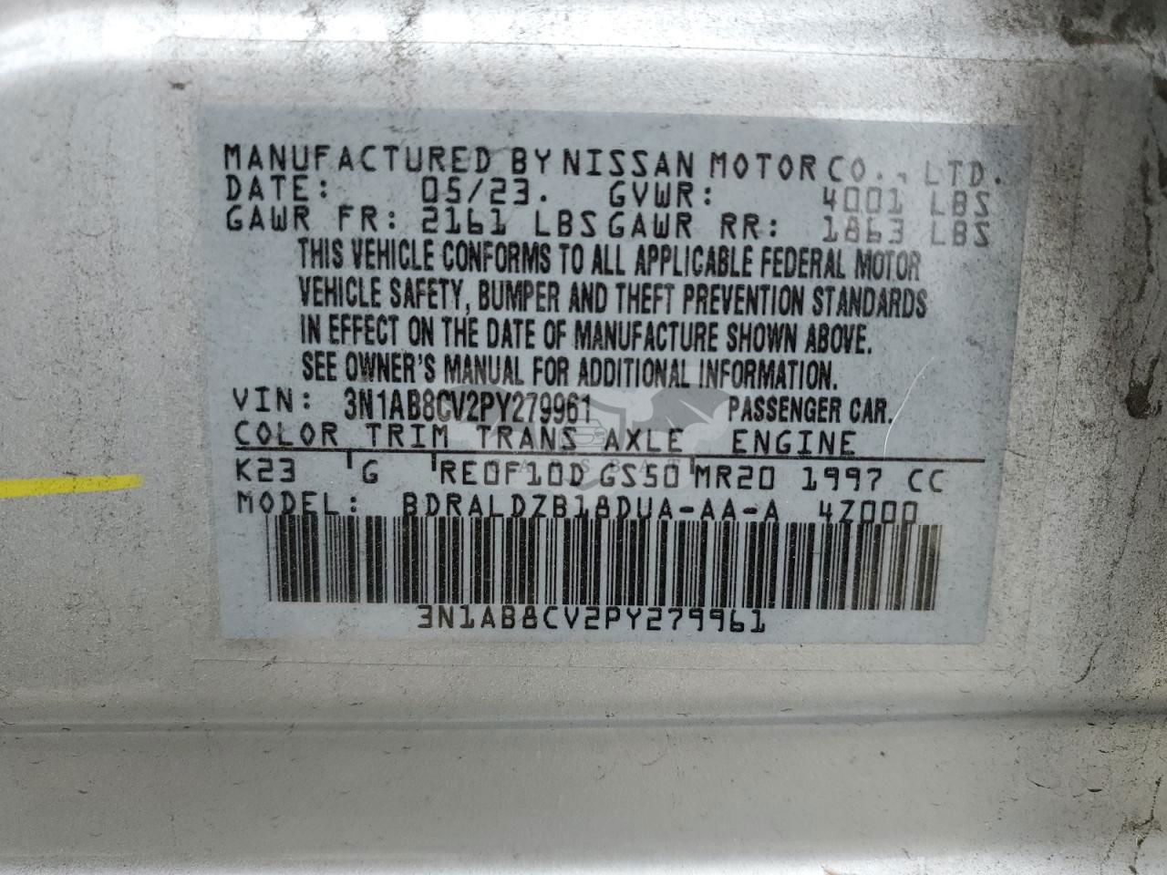 • VIN: 3N1AB8CV2PY279961