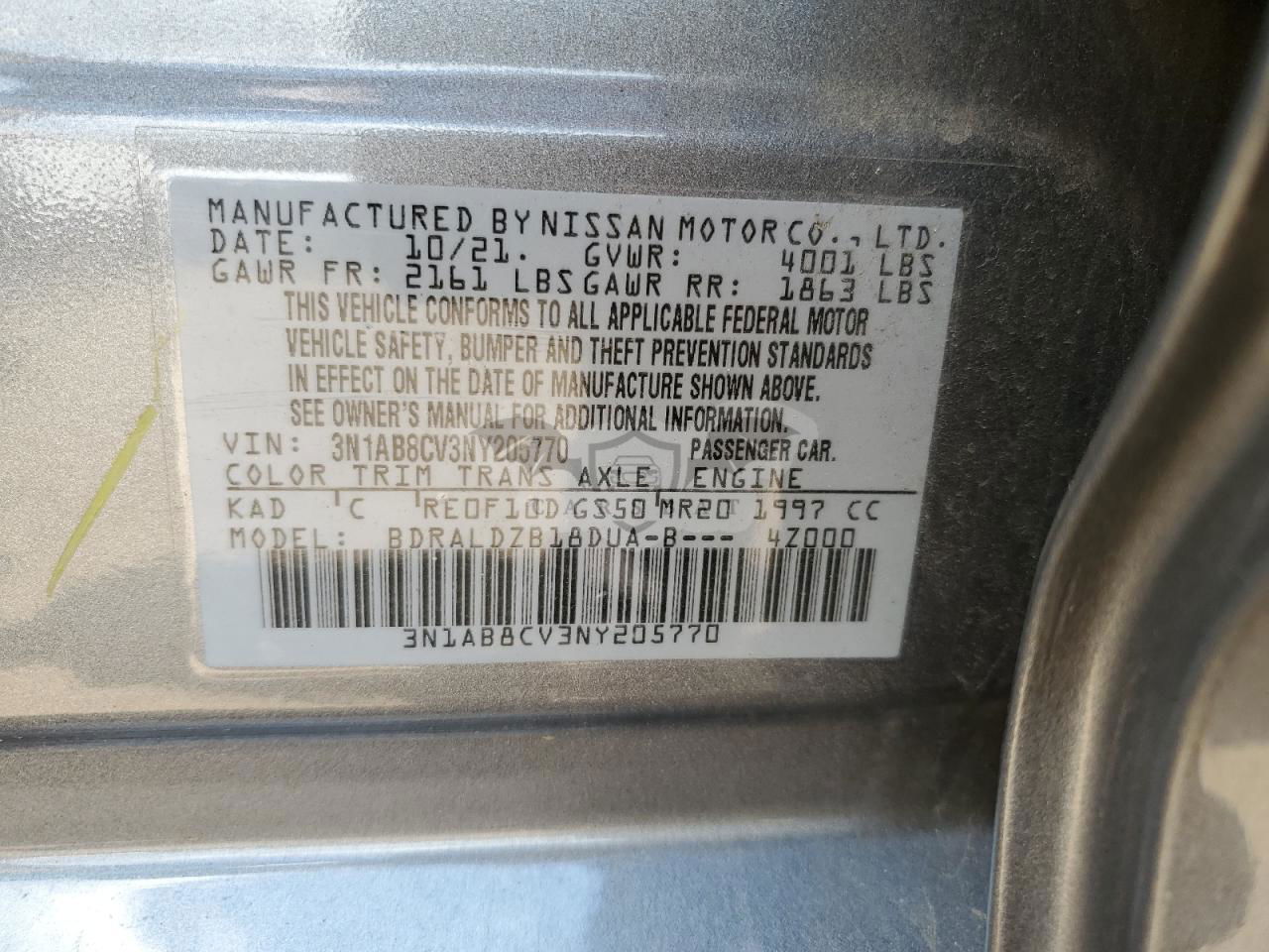 • VIN: 3N1AB8CV3NY205770