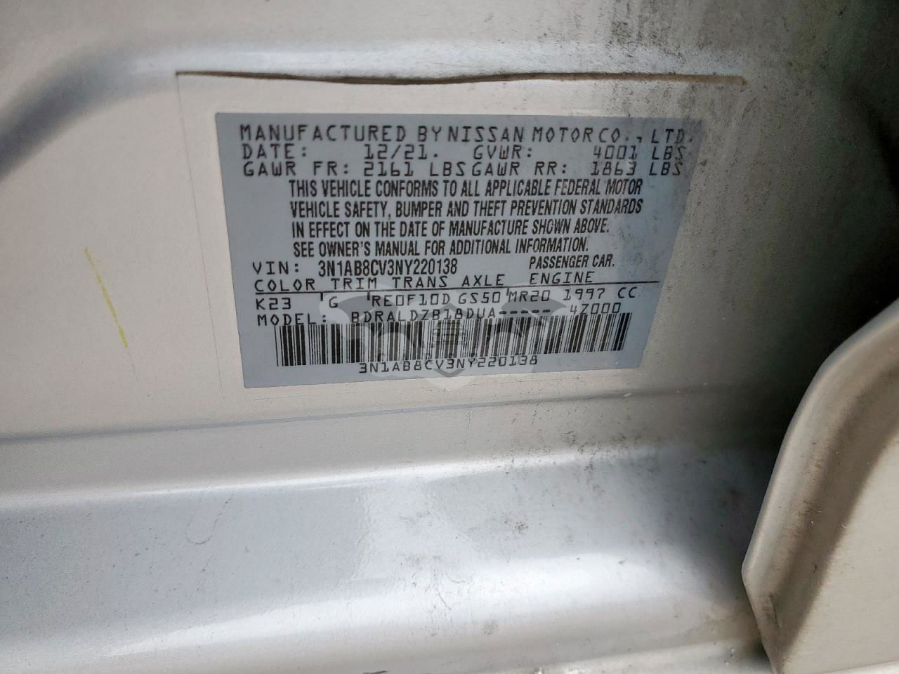 • VIN: 3N1AB8CV3NY220138