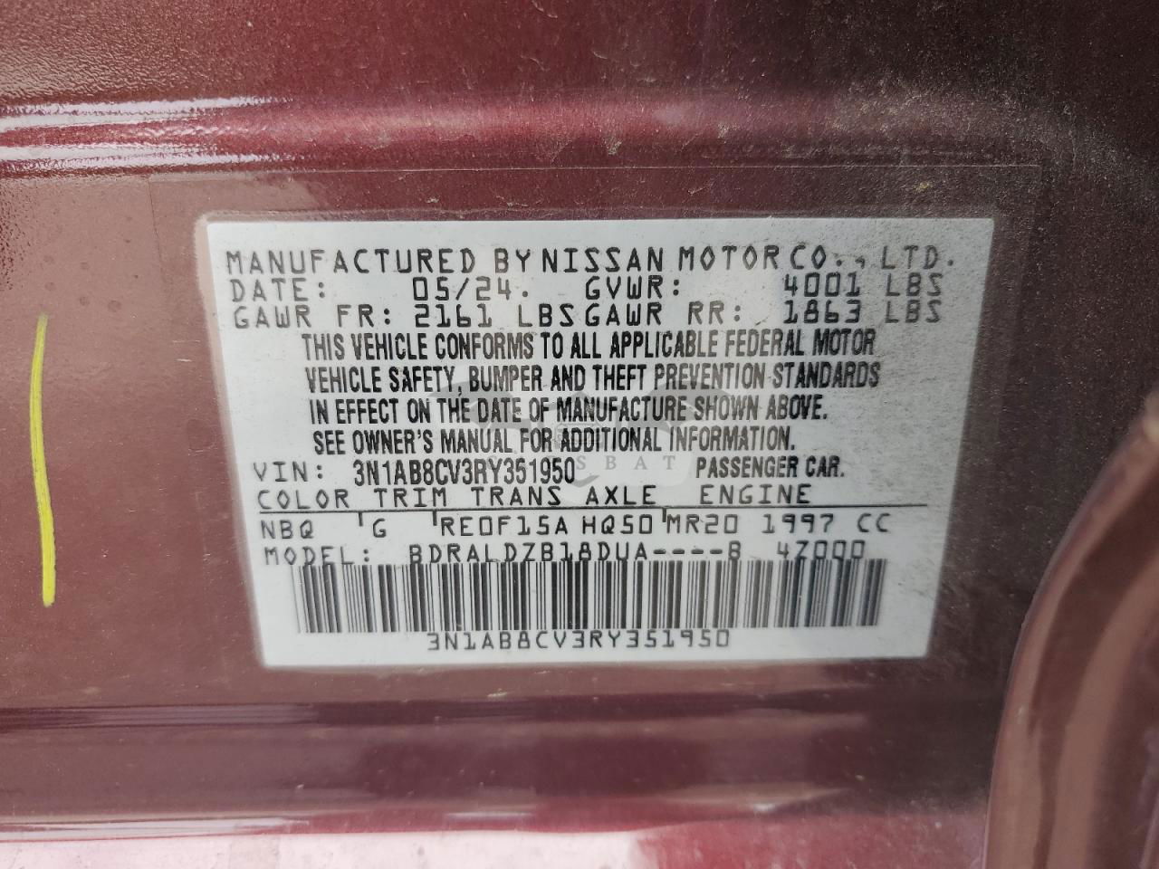 • VIN: 3N1AB8CV3RY351950