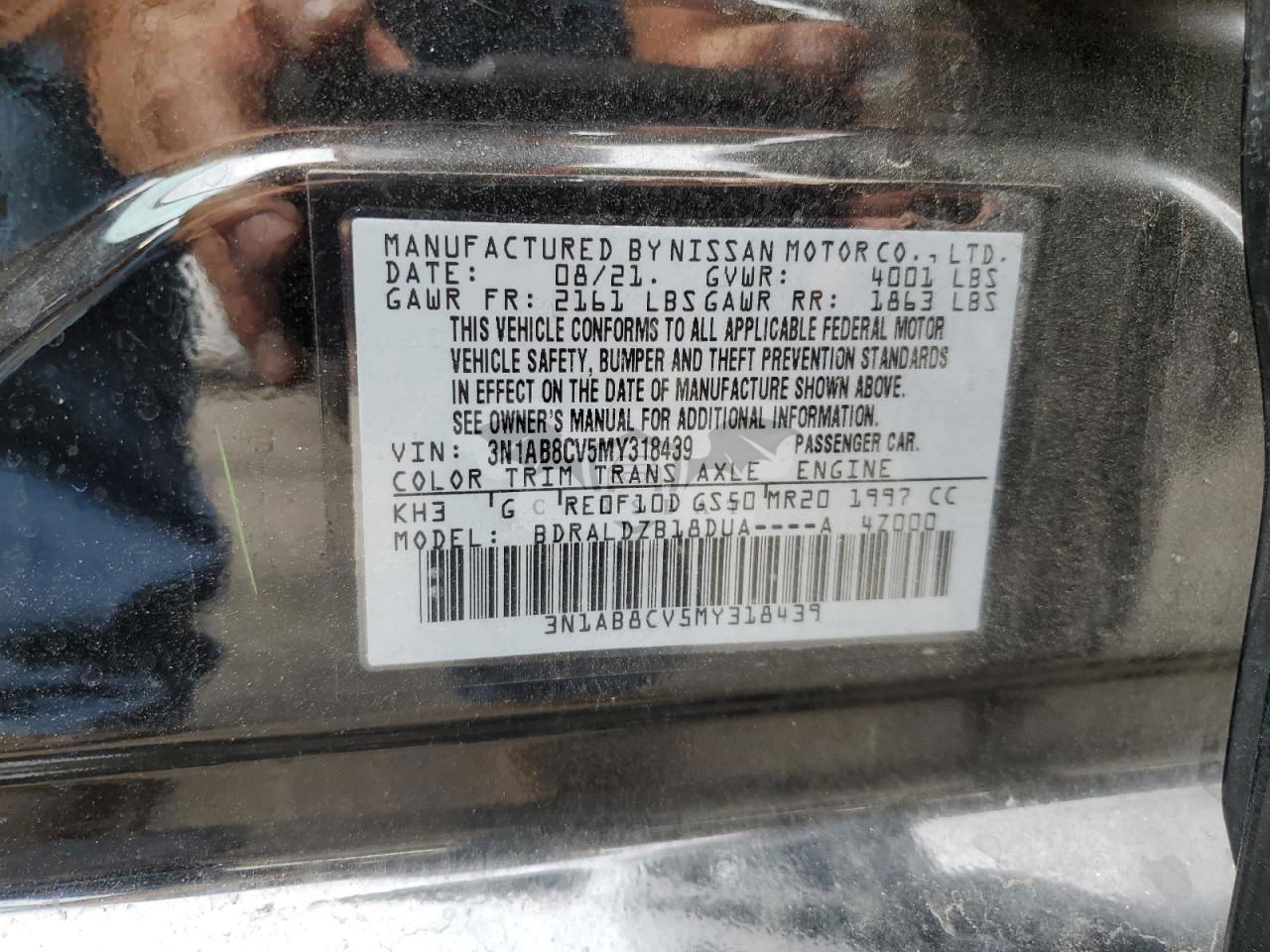 • VIN: 3N1AB8CV5MY318439