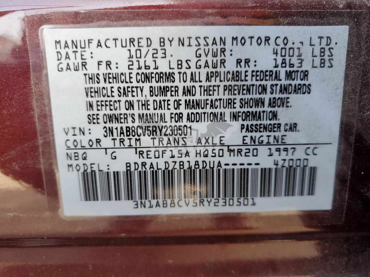 • VIN: 3N1AB8CV5RY230501