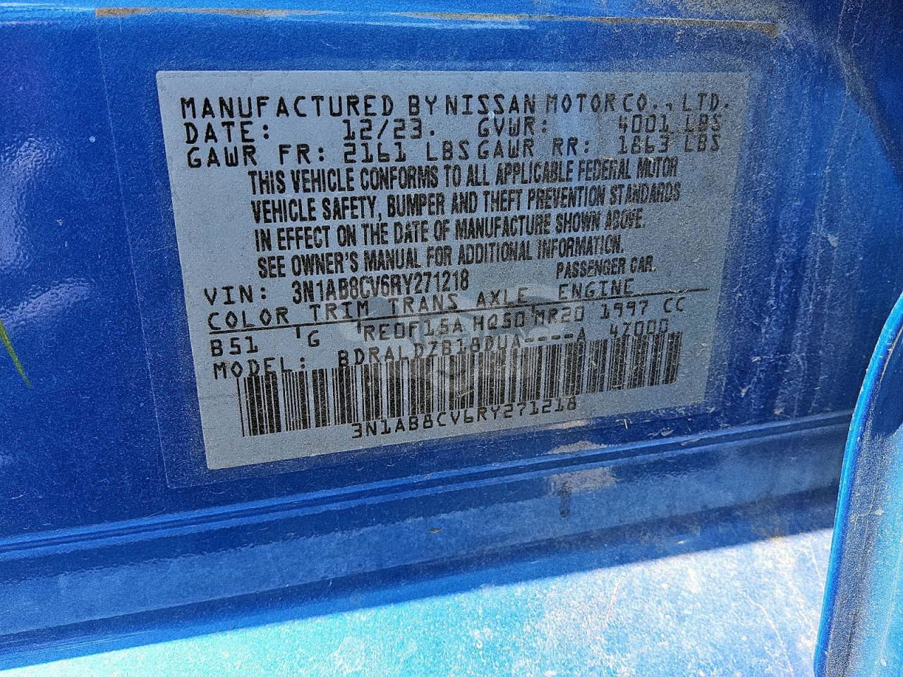 • VIN: 3N1AB8CV6RY271218