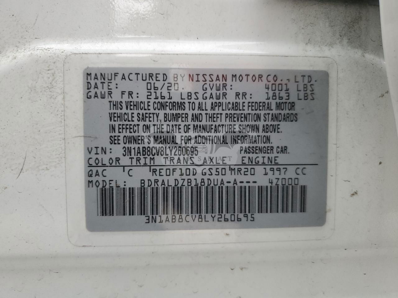 • VIN: 3N1AB8CV8LY260695