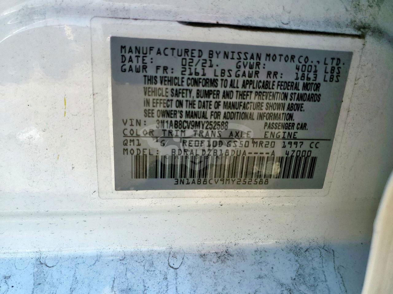 • VIN: 3N1AB8CV9MY252588