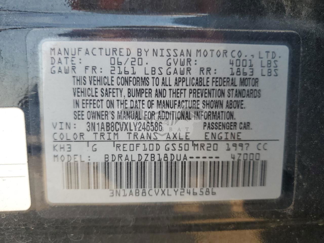 • VIN: 3N1AB8CVXLY246586
