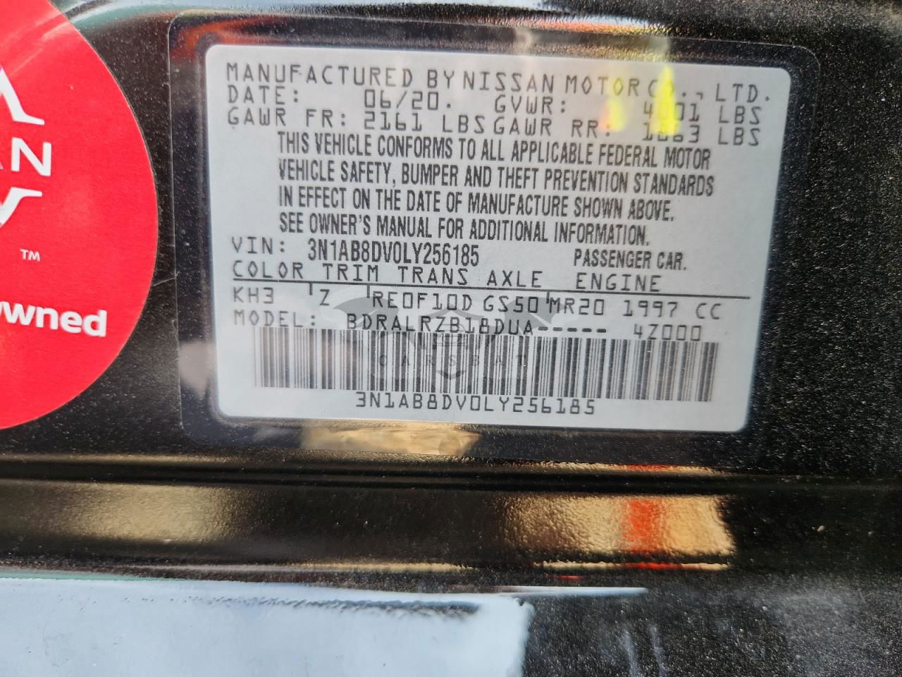 • VIN: 3N1AB8DV0LY256185