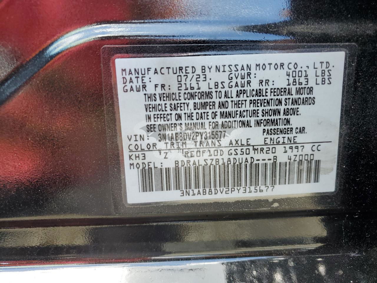 • VIN: 3N1AB8DV2PY315677