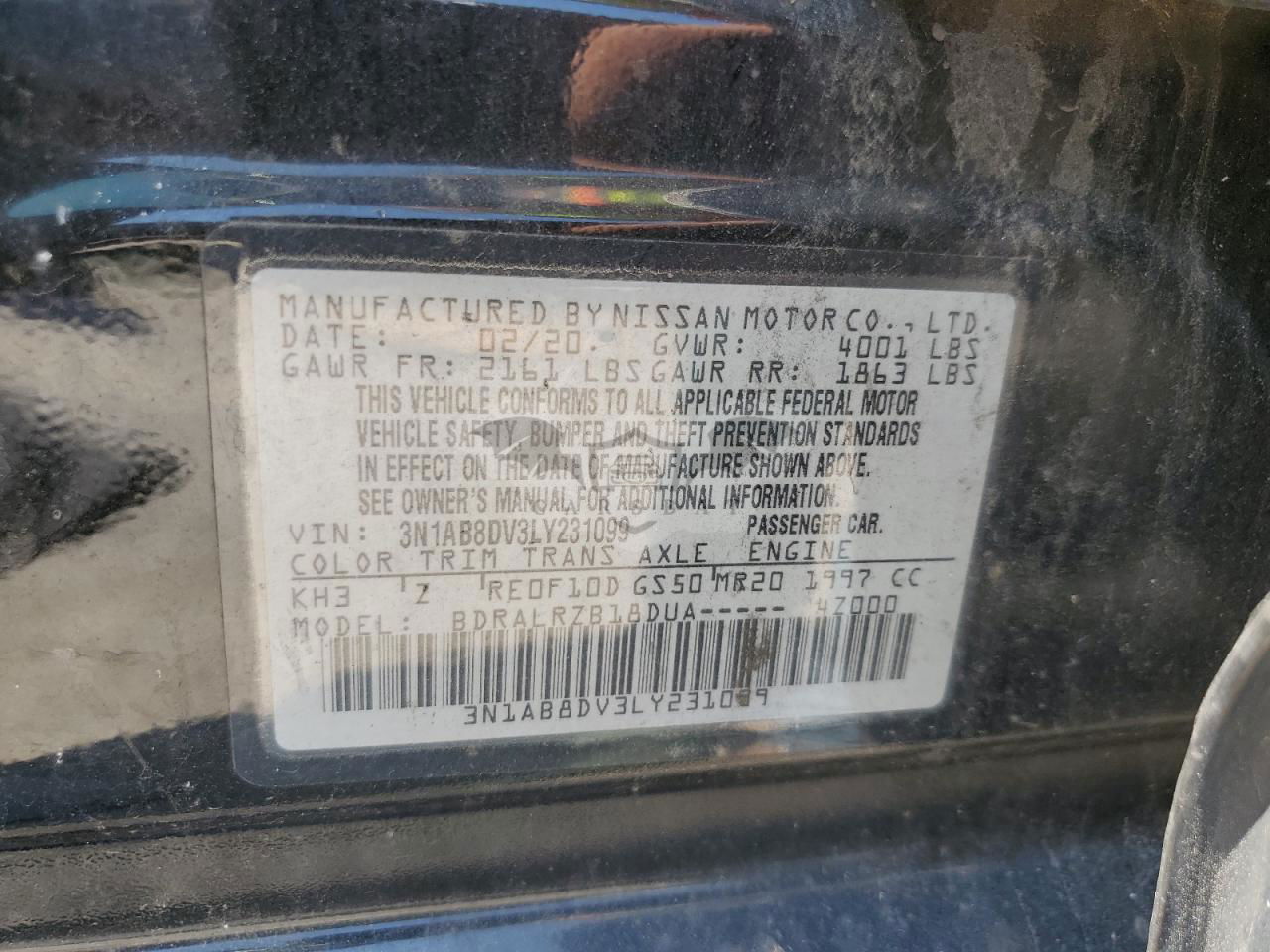 • VIN: 3N1AB8DV3LY231099