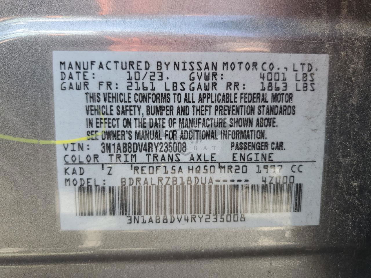 • VIN: 3N1AB8DV4RY235008