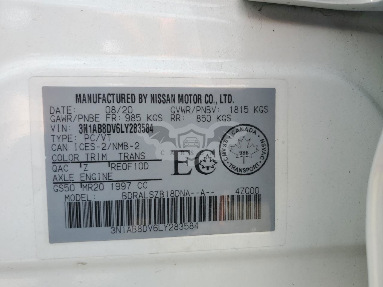 • VIN: 3N1AB8DV6LY283584