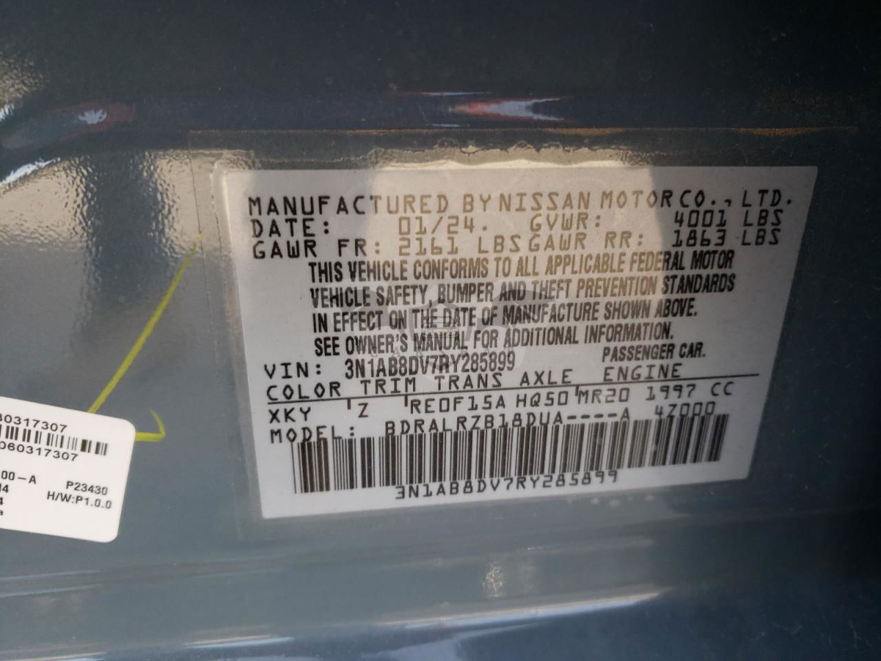 • VIN: 3N1AB8DV7RY285899