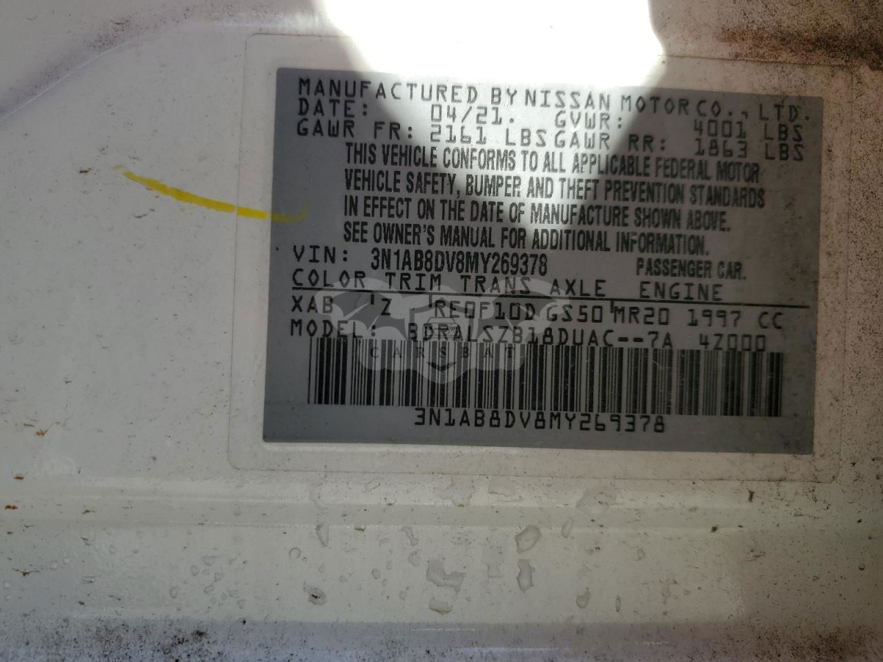 • VIN: 3N1AB8DV8MY269378