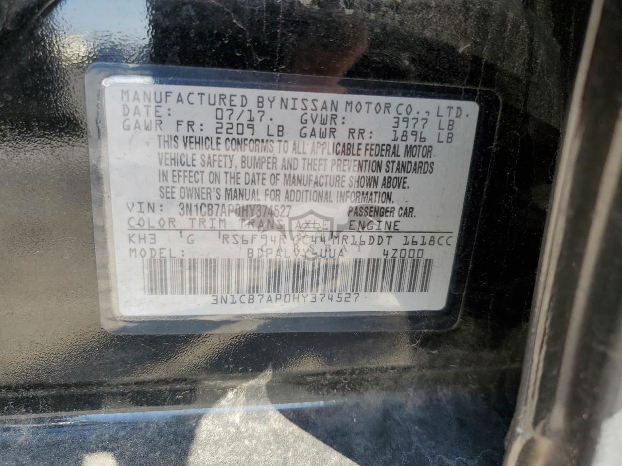• VIN: 3N1CB7AP0HY374527