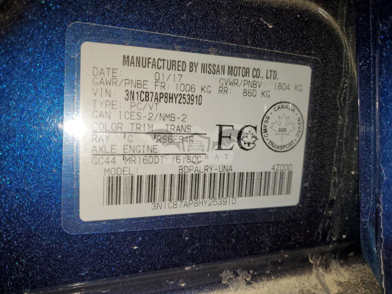 • VIN: 3N1CB7AP8HY253910