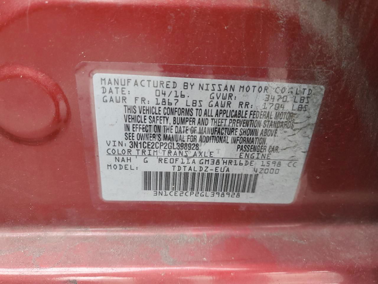 • VIN: 3N1CE2CP2GL398928