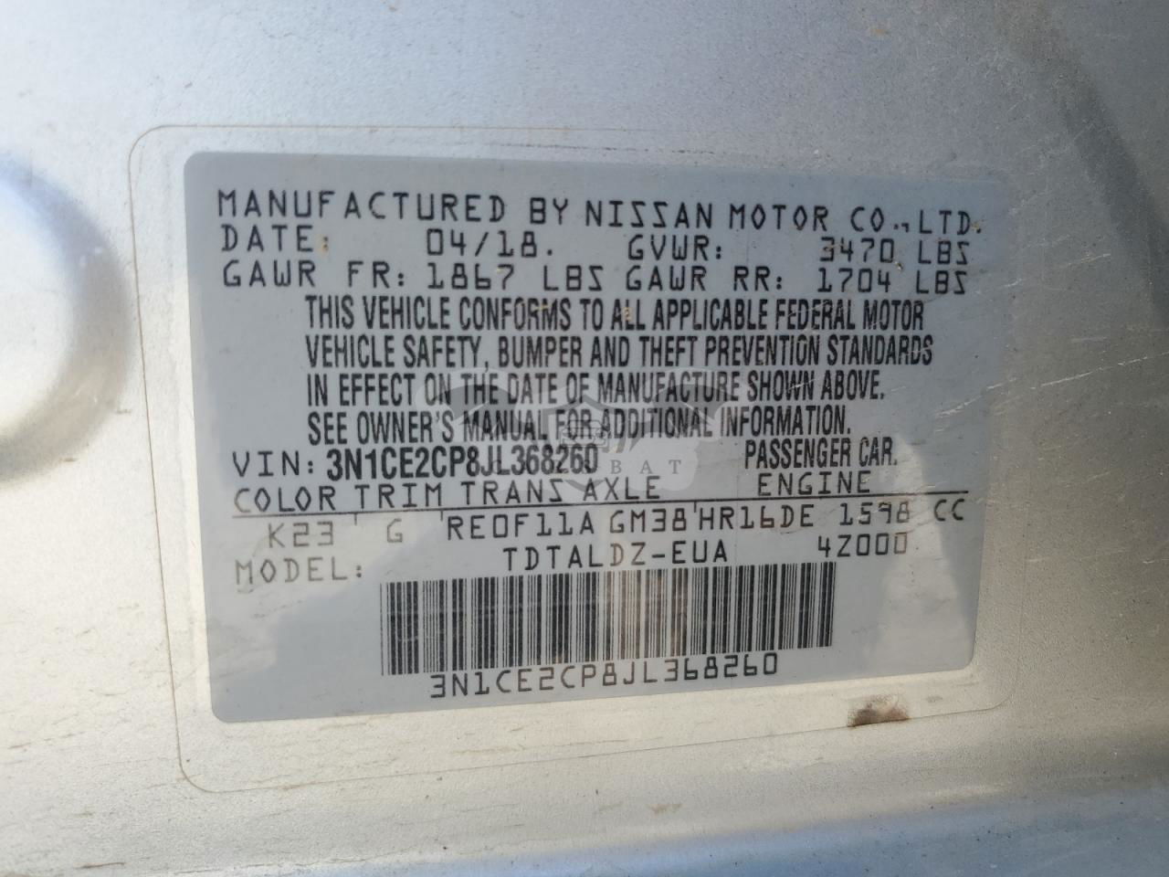 • VIN: 3N1CE2CP8JL368260