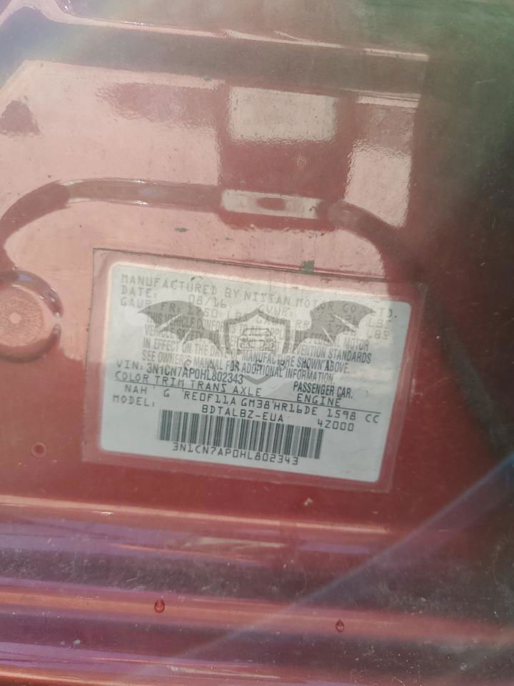 • VIN: 3N1CN7AP0HL802343