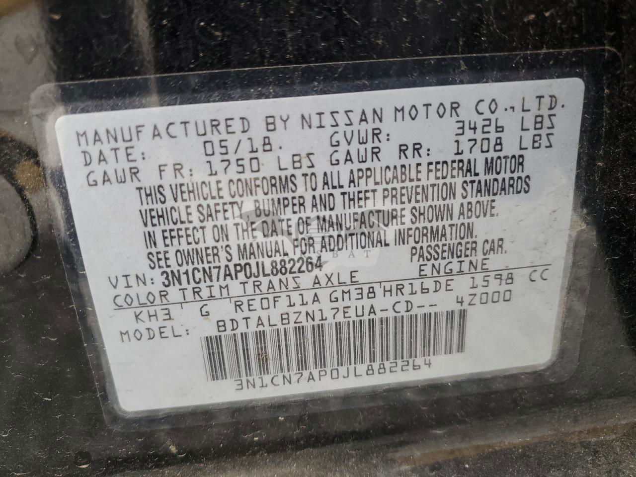 • VIN: 3N1CN7AP0JL882264