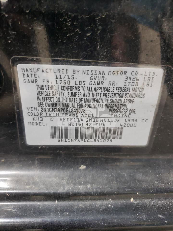 • VIN: 3N1CN7AP6GL841078