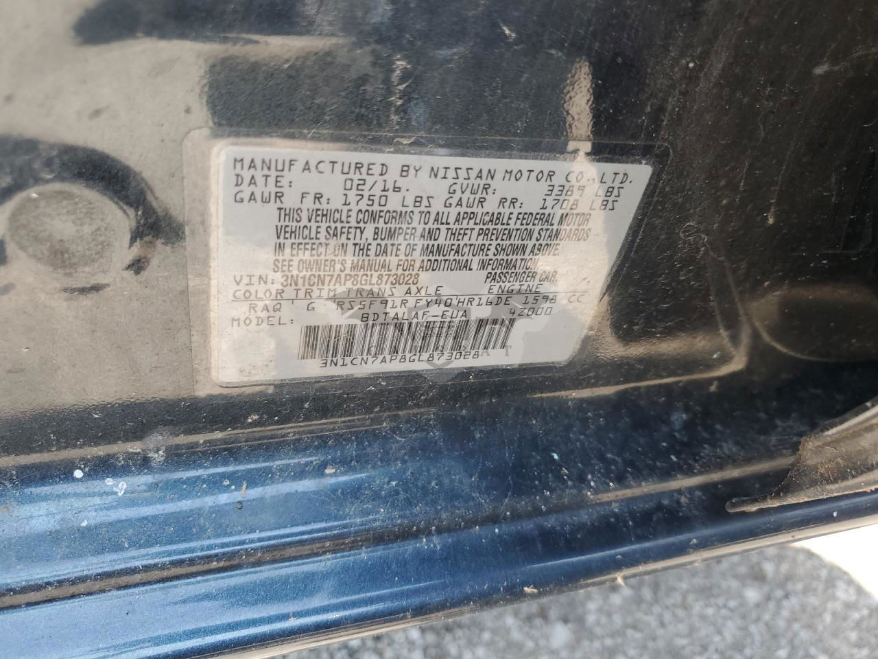 • VIN: 3N1CN7AP8GL873028