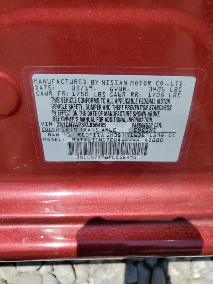 • VIN: 3N1CN7AP8KL856495