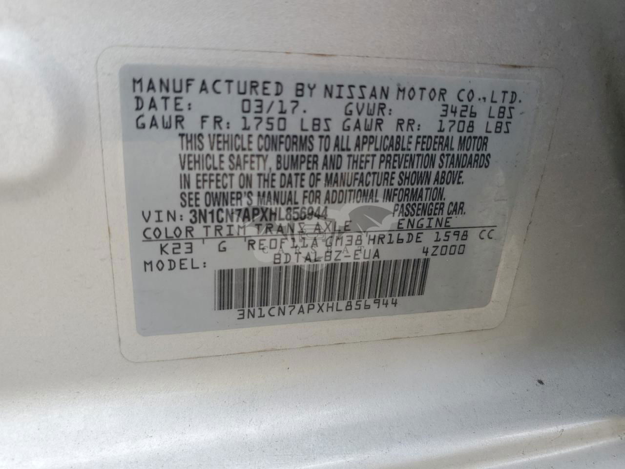 • VIN: 3N1CN7APXHL856944