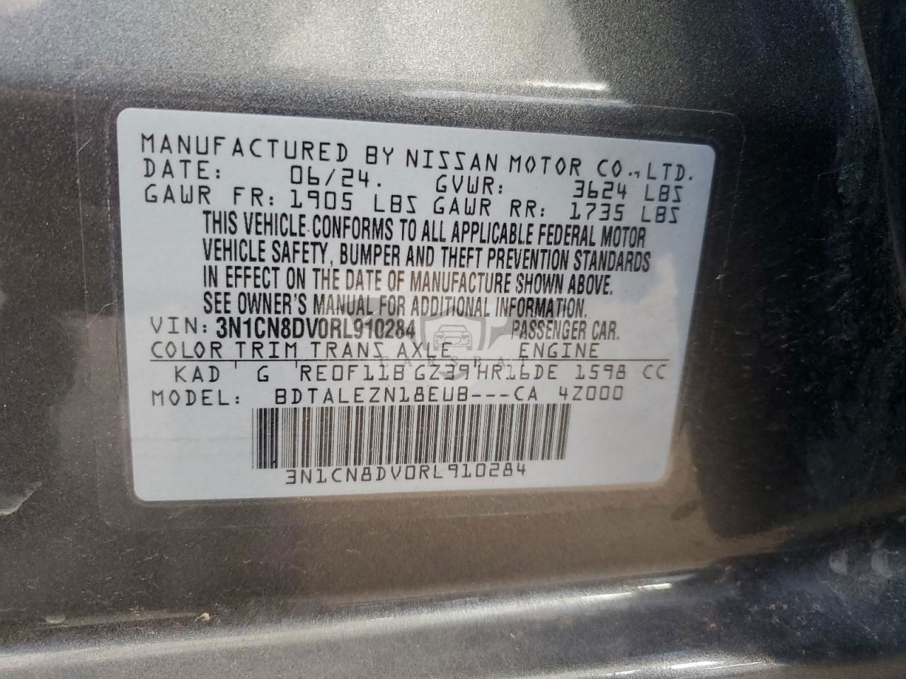 • VIN: 3N1CN8DV0RL910284