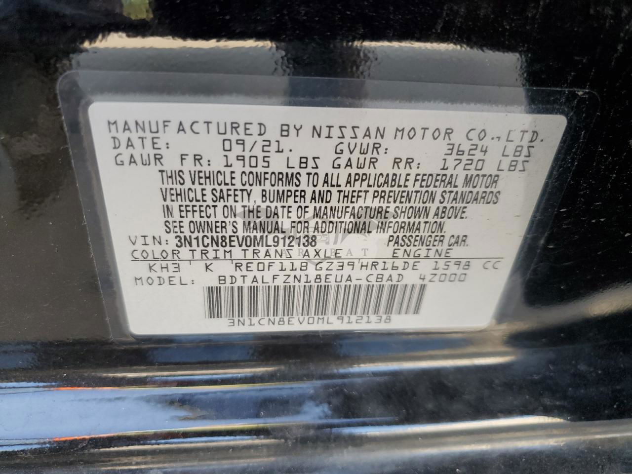 • VIN: 3N1CN8EV0ML912138