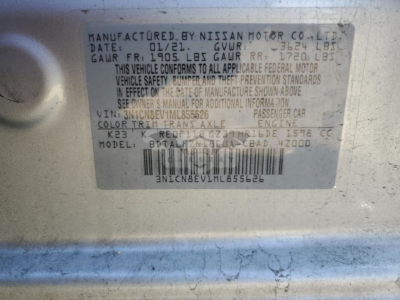• VIN: 3N1CN8EV1ML855626