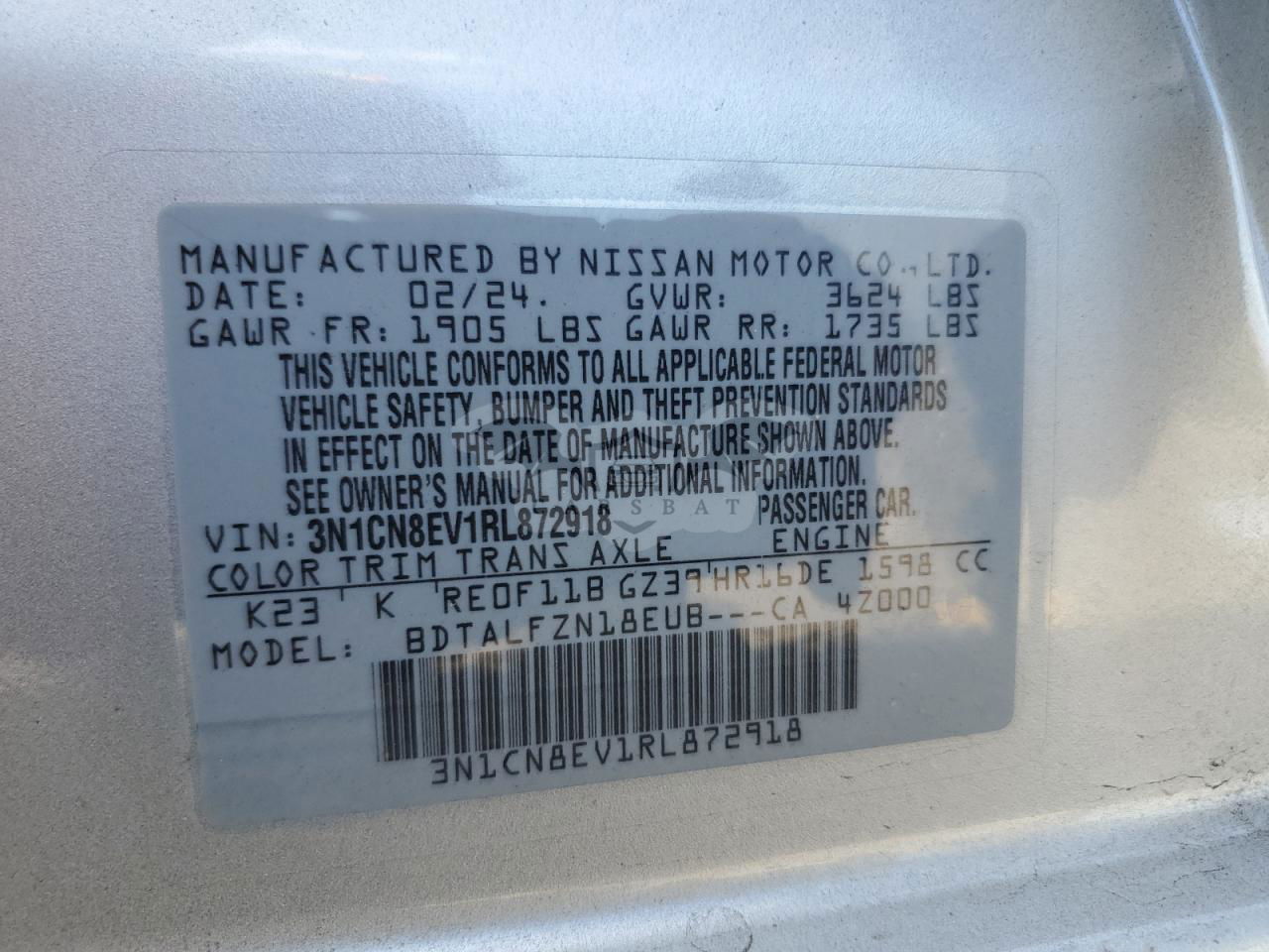 • VIN: 3N1CN8EV1RL872918