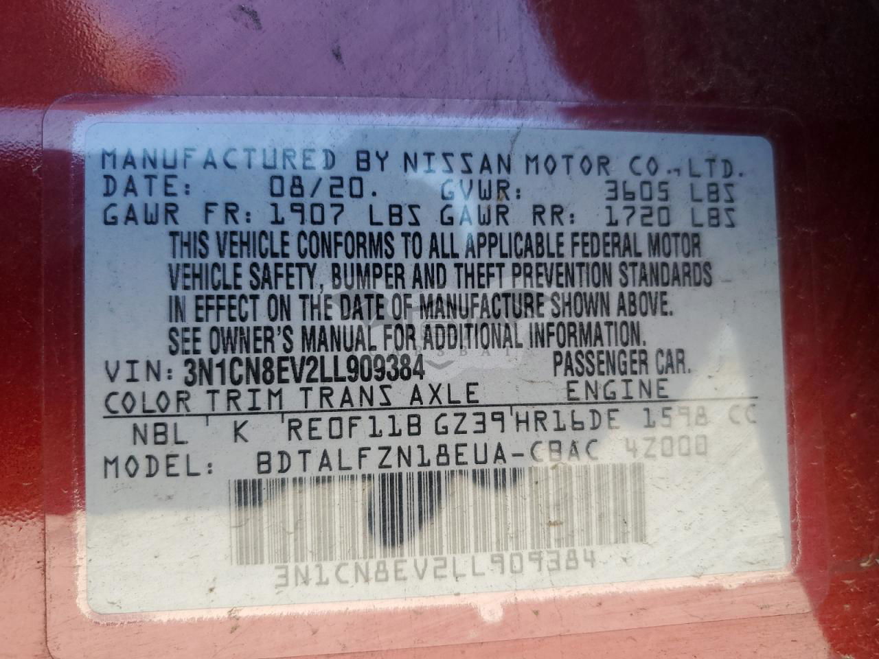 • VIN: 3N1CN8EV2LL909384