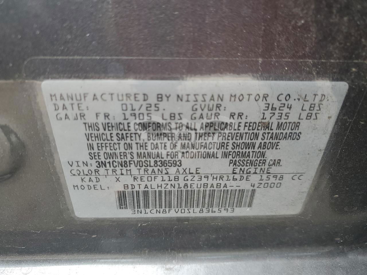 • VIN: 3N1CN8FV0SL836593