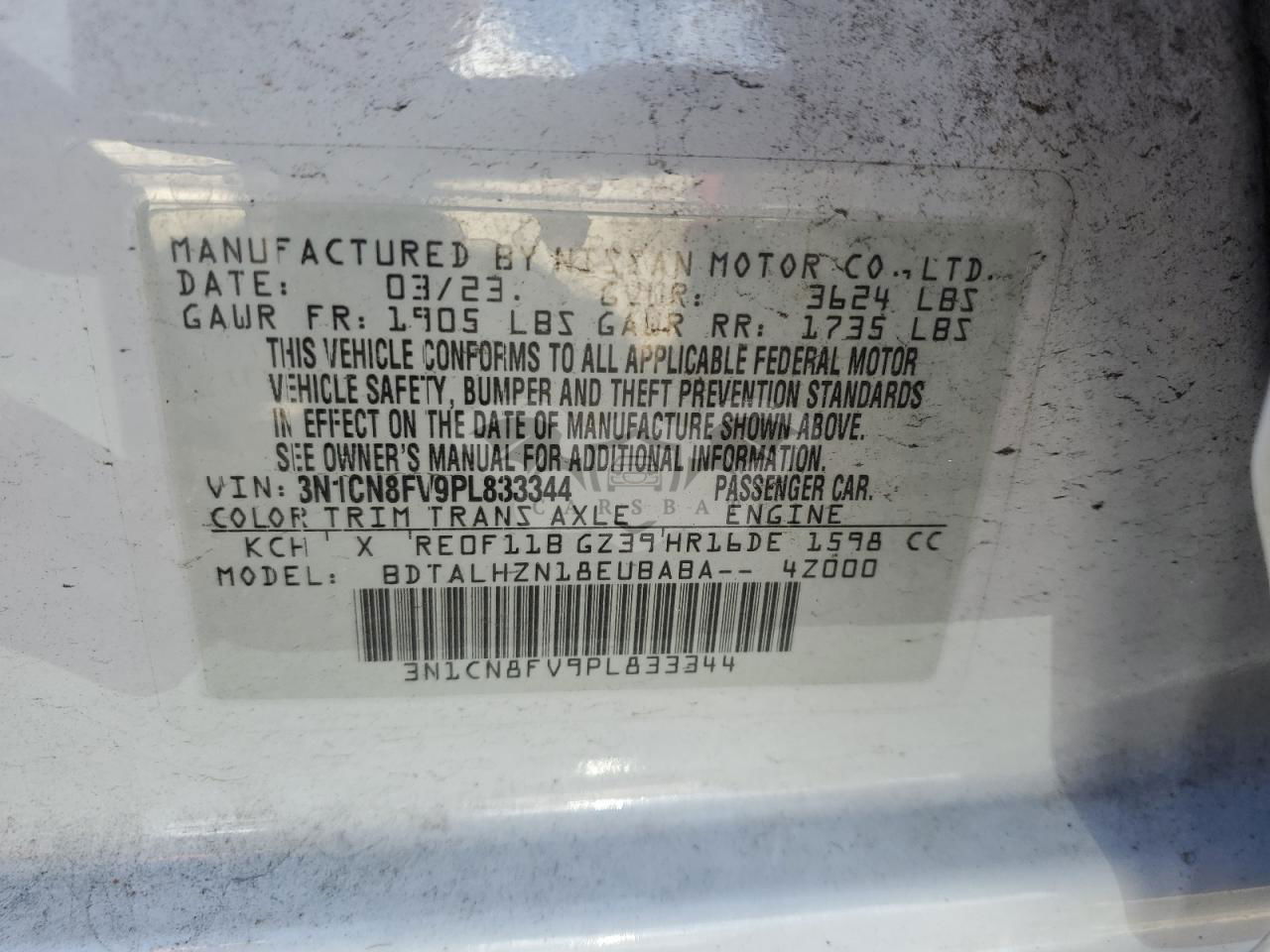 • VIN: 3N1CN8FV9PL833344