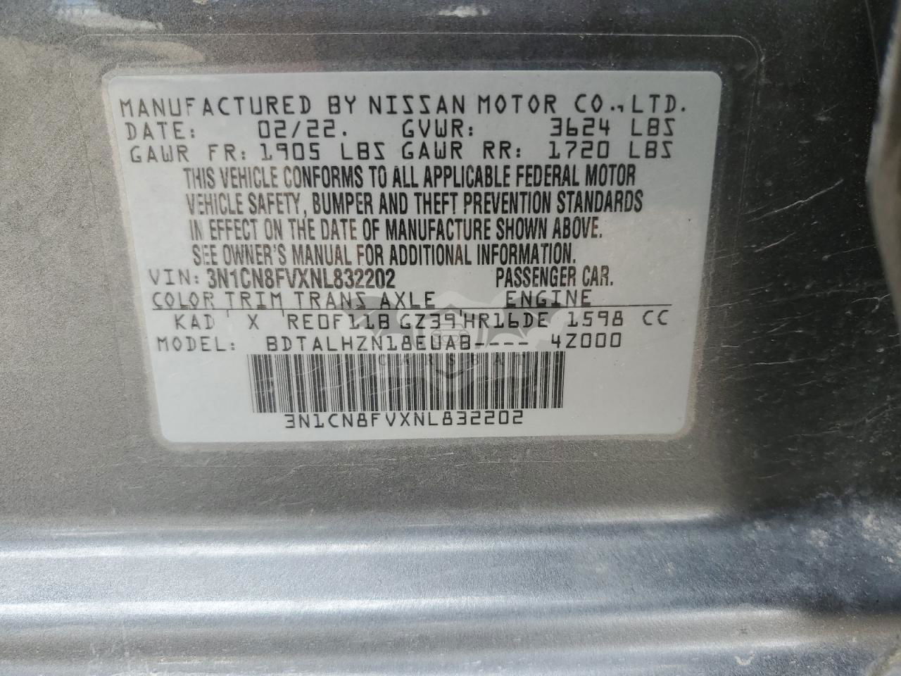 • VIN: 3N1CN8FVXNL832202