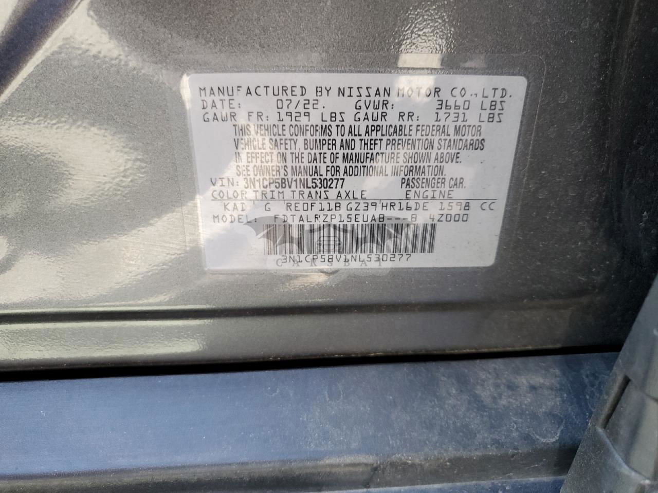 • VIN: 3N1CP5BV1NL530277