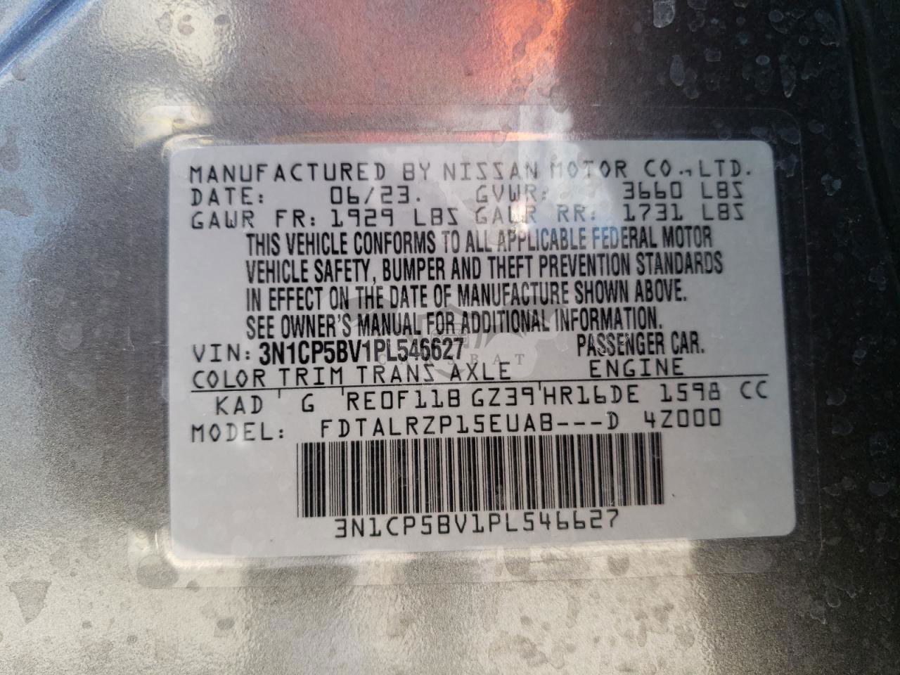 • VIN: 3N1CP5BV1PL546627