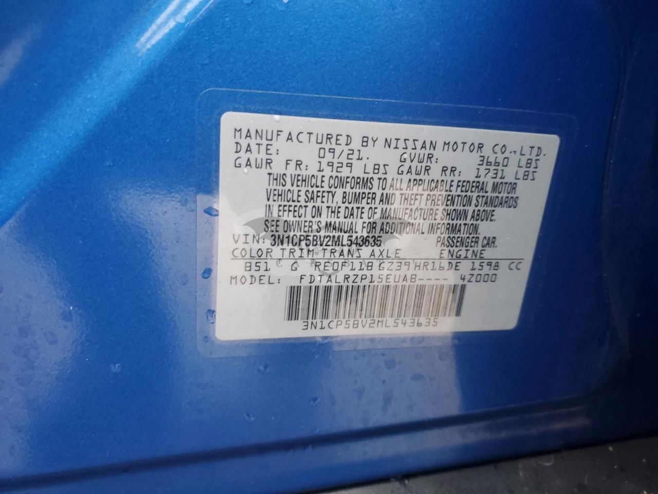 • VIN: 3N1CP5BV2ML543635