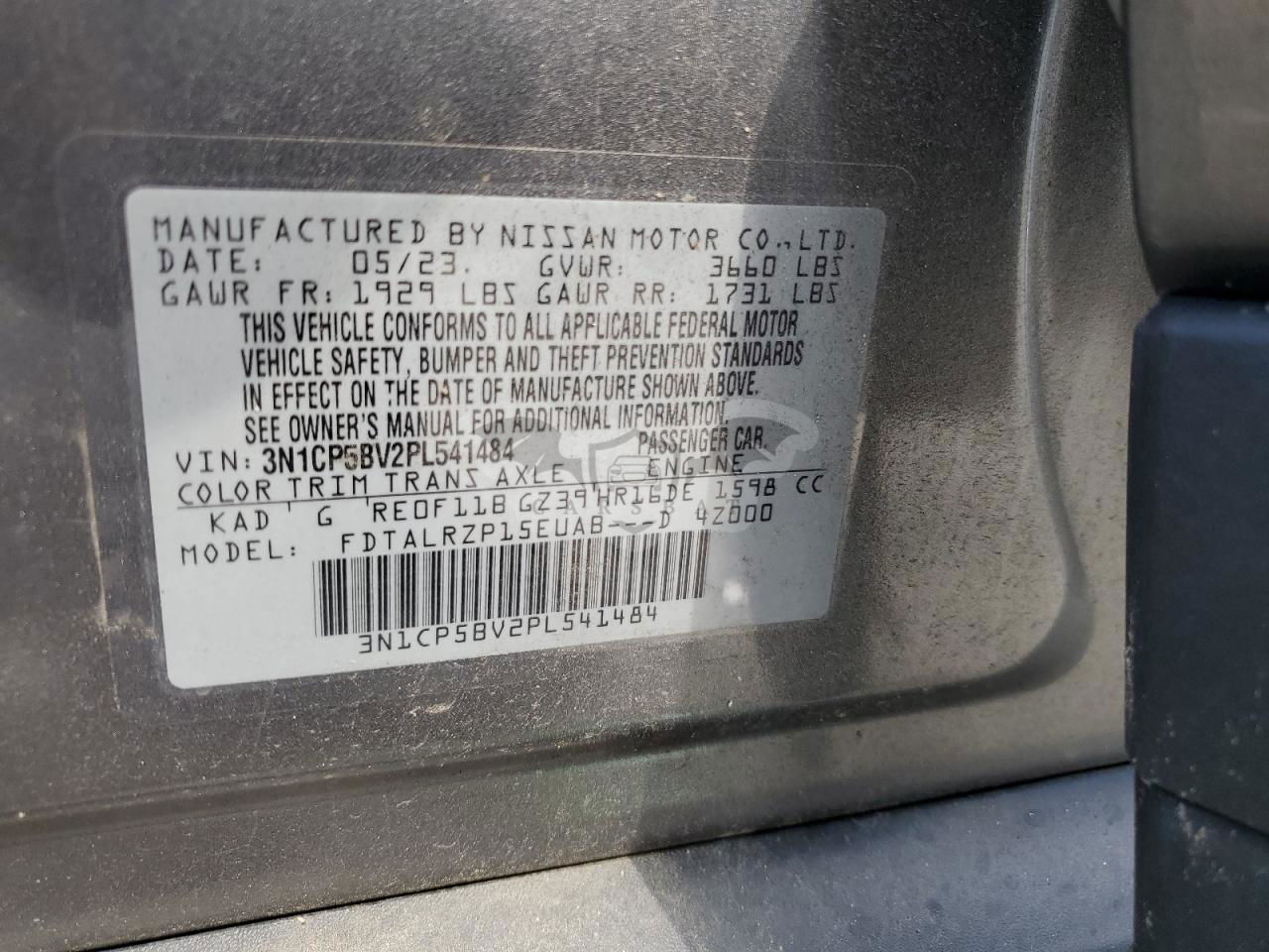 • VIN: 3N1CP5BV2PL541484