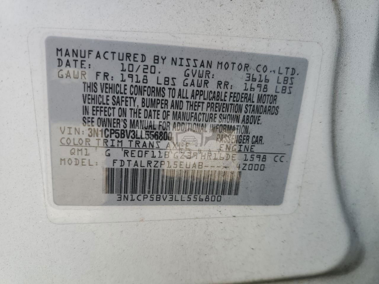• VIN: 3N1CP5BV3LL556800