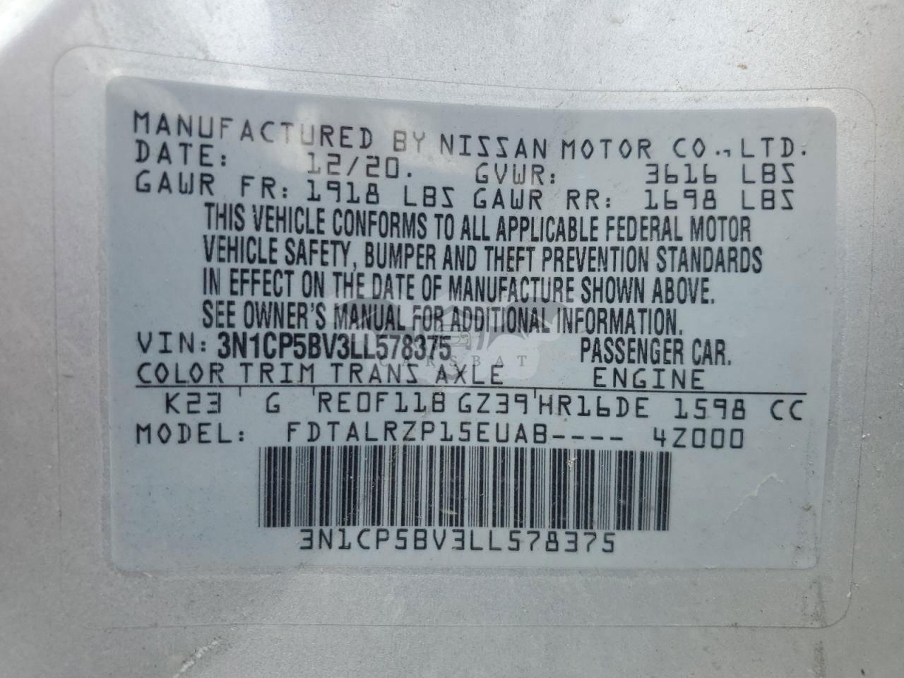 • VIN: 3N1CP5BV3LL578375