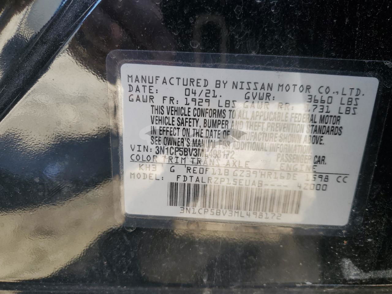 • VIN: 3N1CP5BV3ML498172