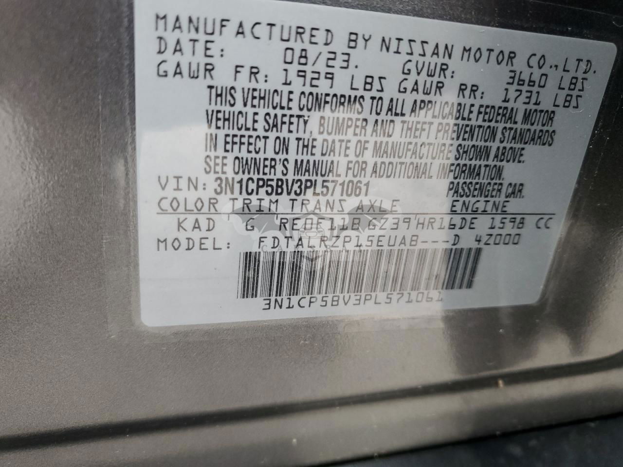 • VIN: 3N1CP5BV3PL571061