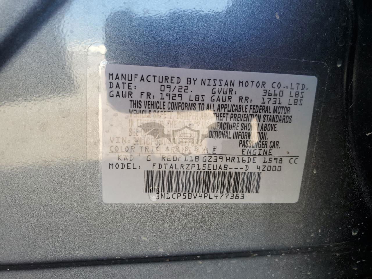 • VIN: 3N1CP5BV4PL477383