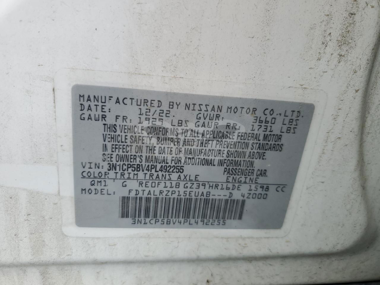 • VIN: 3N1CP5BV4PL492255