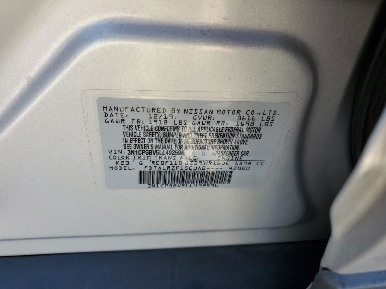 • VIN: 3N1CP5BV5LL492596