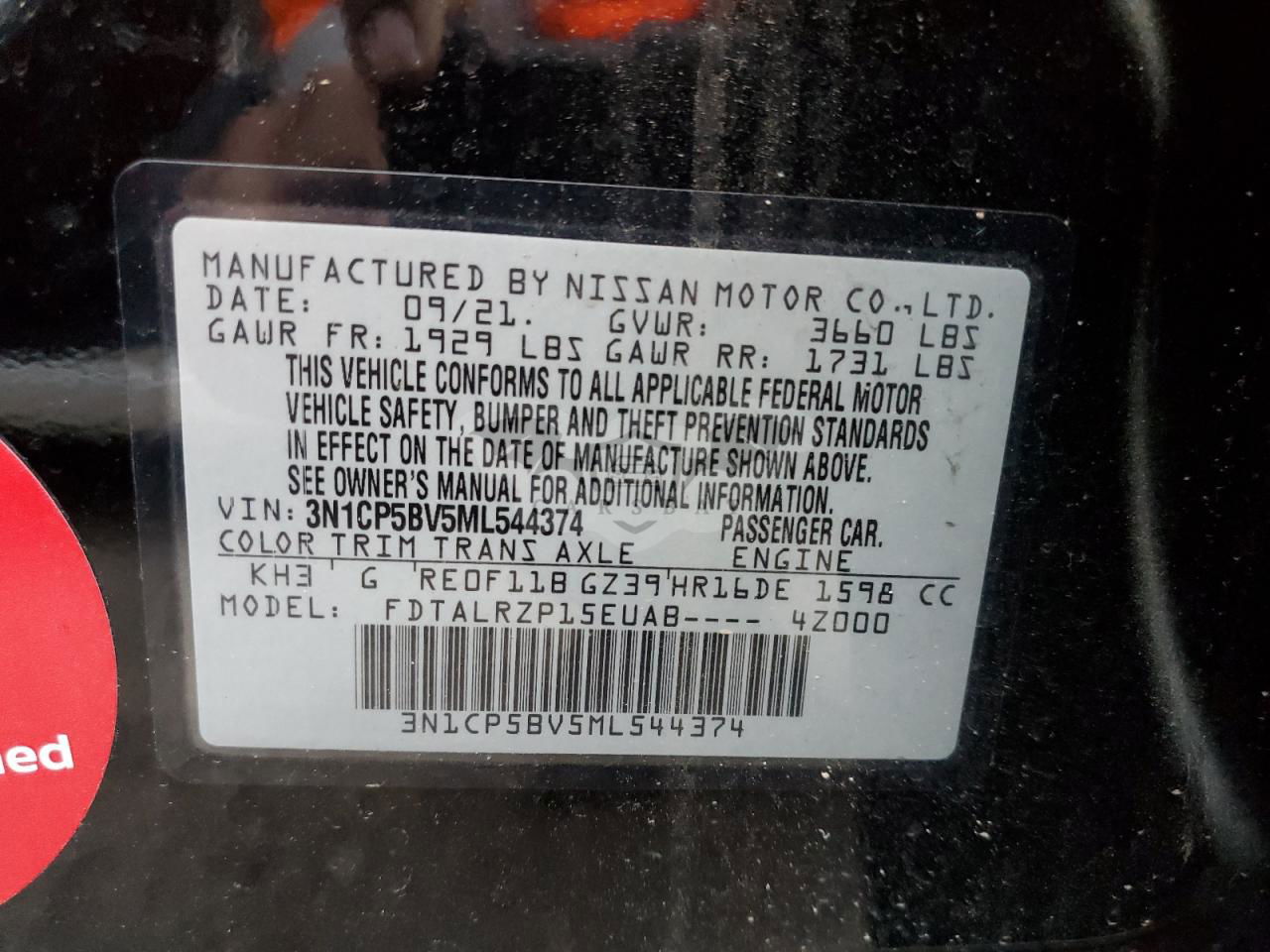 • VIN: 3N1CP5BV5ML544374